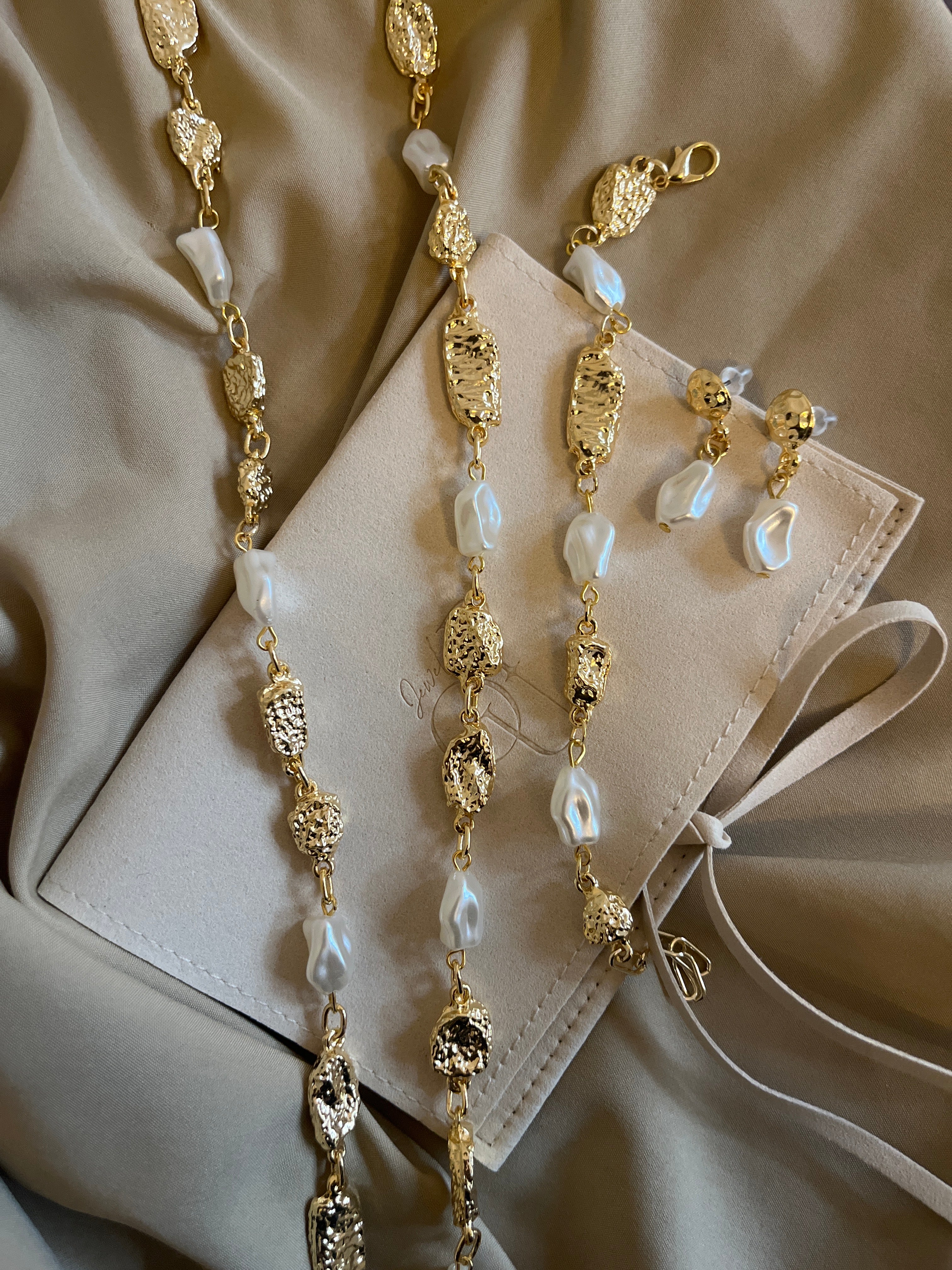 Set of 3 includes necklace, earrings and bracelet.