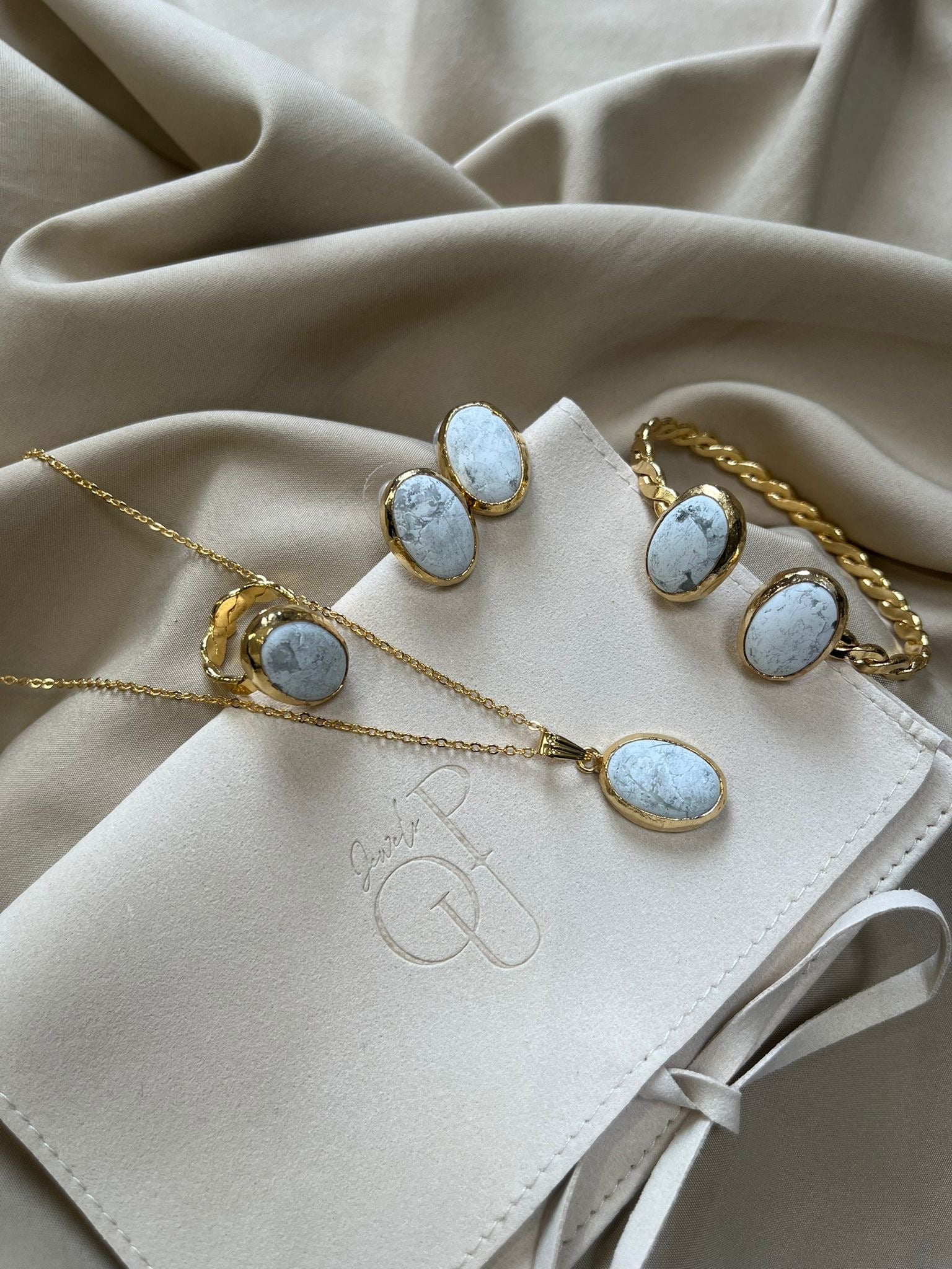 bangle, ring , necklace and earrings